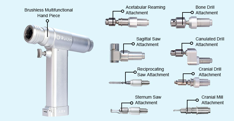 can be used with many attachments, such as: Oscillating saw, K wire, Bone drill, canulated drill...etc